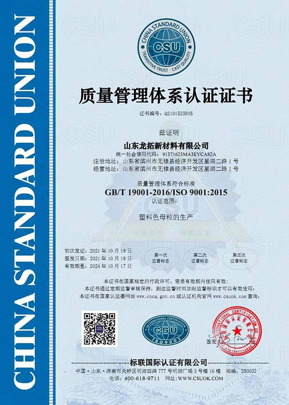 山東龍拓新材料有限公司地處黃河三角洲開發(fā)區(qū)和渤海藍(lán)色帶開發(fā)區(qū)。公司注冊(cè)資本5175.5萬元,主要產(chǎn)品為黑色母粒、彩色母粒、白色母粒、消泡母粒等,自主研發(fā)生產(chǎn)高扭矩高轉(zhuǎn)速雙螺桿生產(chǎn)線,為客戶提供高標(biāo)準(zhǔn)高質(zhì)量的優(yōu)質(zhì)服務(wù)。